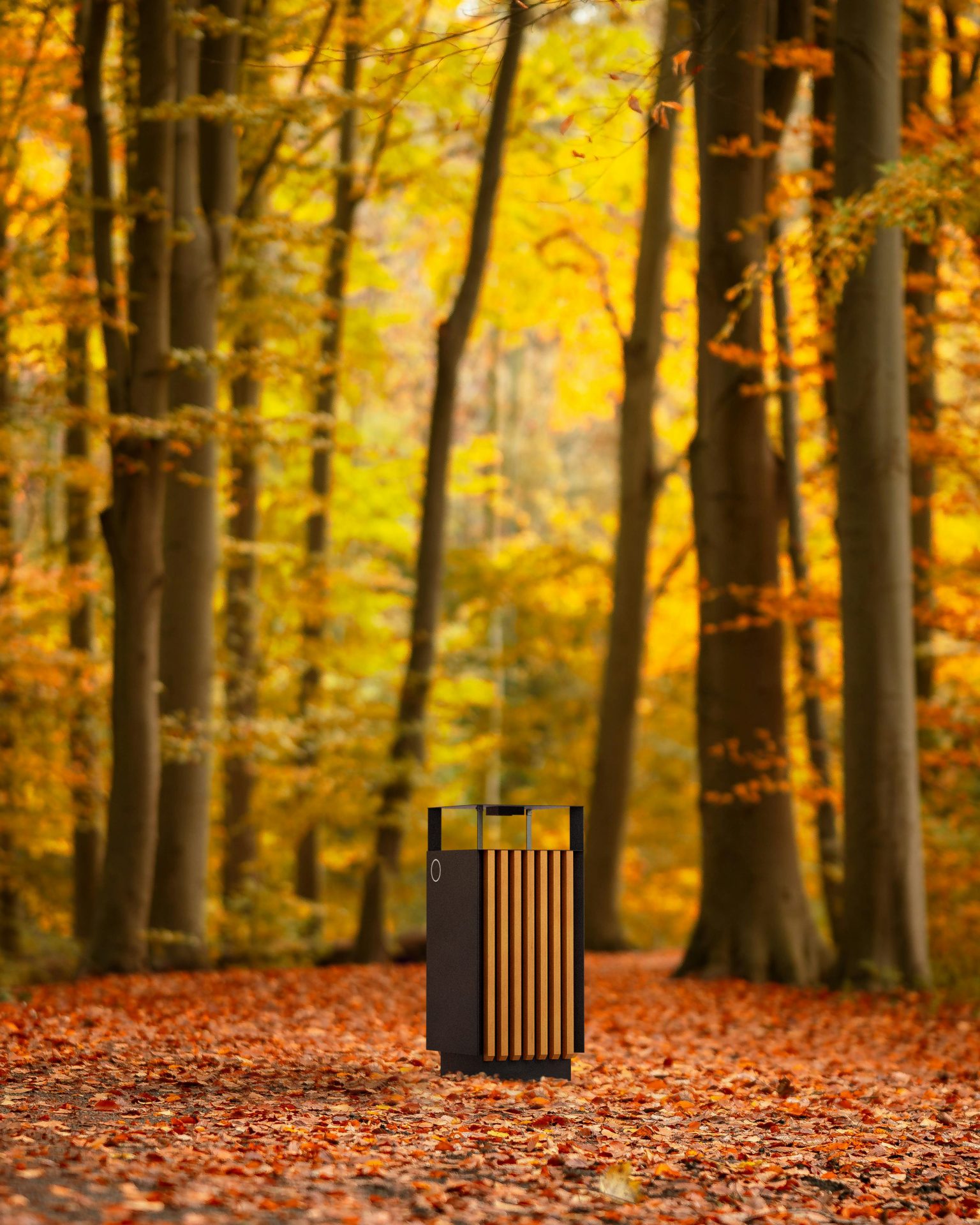 The cleanliness of a public space is an important indicator of the quality of life in a city. Trash bins are a design element that not only help to keep order but also aesthetically complement the public space. The waste bin in a combination of steel and wood is particularly suitable for parks, gardens, playgrounds and pedestrian areas. The welded steel structure is lined with wooden slats, which are stained with a special varnish for outdoor use. The steel part is treated with powder varnish, which protects the varnish against adverse weather conditions. Easy handling is made possible by two internal handles.