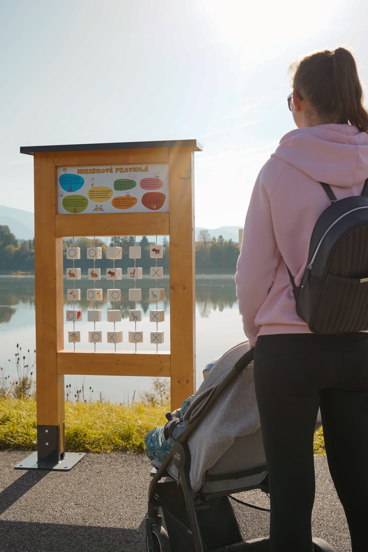 In the upper part there is a double-sided information board suitable for various types of information, for example about natural or cultural monuments, cycling routes... In the lower part there are rotatable dice that can be used for memory games or puzzles. It is also possible to connect them in the form of drawings or puzzles with the texts in the upper part, so that they entertain especially children.
